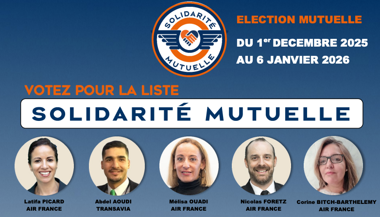 La liste solidarité mutuelle est une équipe PARITAIRE constituée de salariés d’Air France,